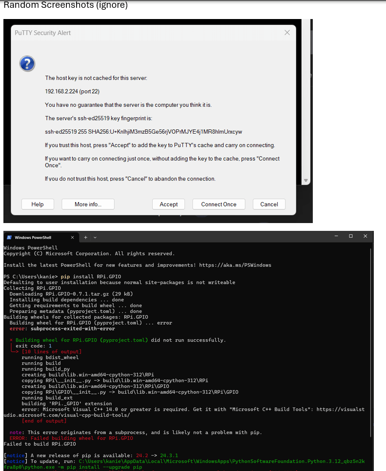 Screenshots of me trying to get things to work with varying levels of success: